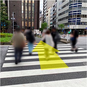 ファミリーマートを背に、目の前の大きな横断歩道を渡ります。